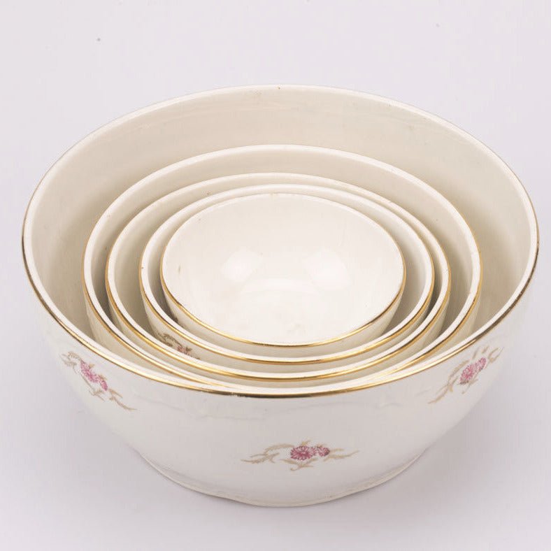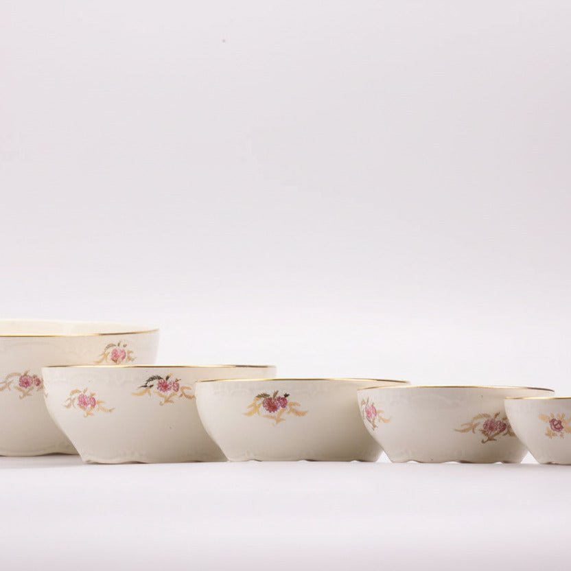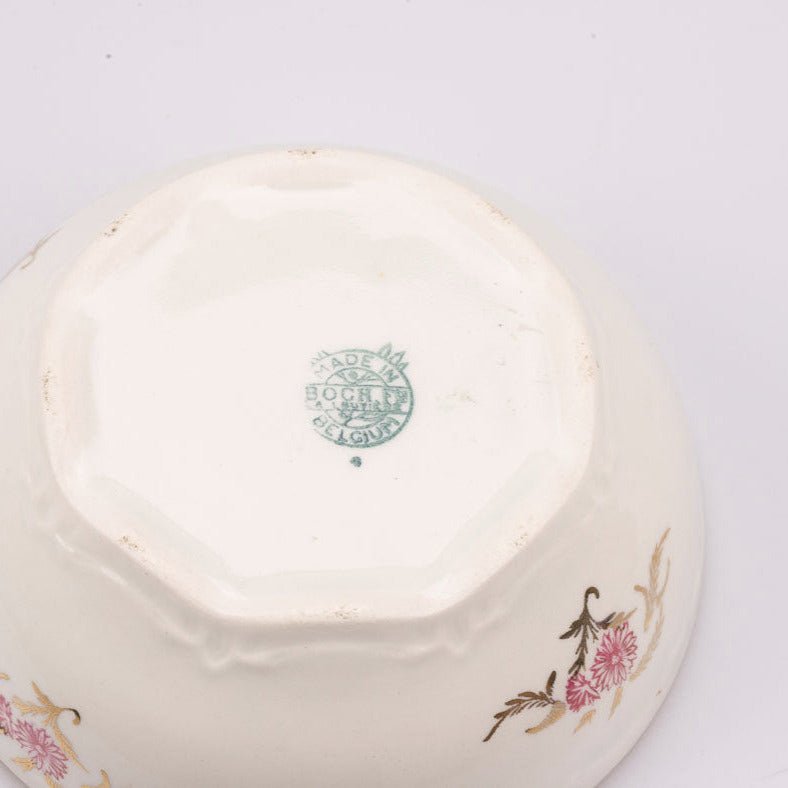 Set of 5 Boch white salad bowls with pink flowers