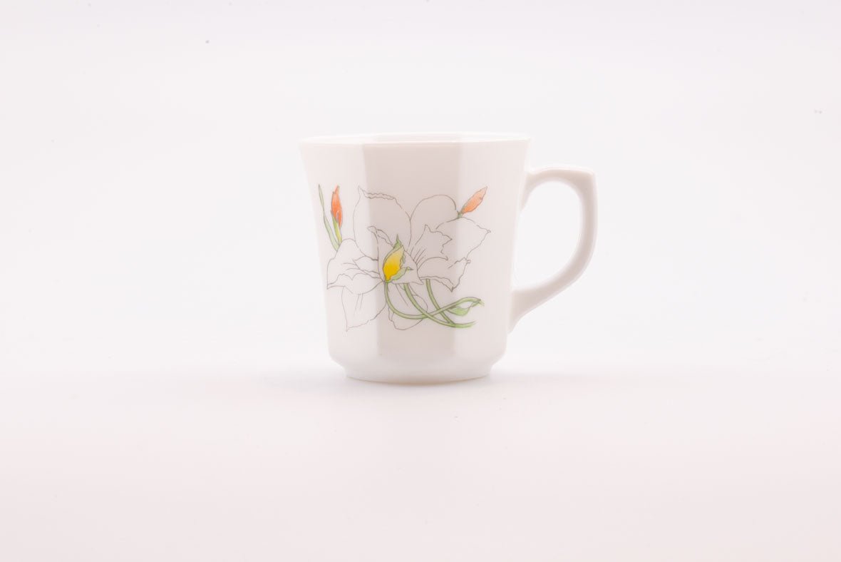Vintage white Arcopal mug from the 1960s. They are octagonal in shape and feature a daffodil design. Their medium size... Read more