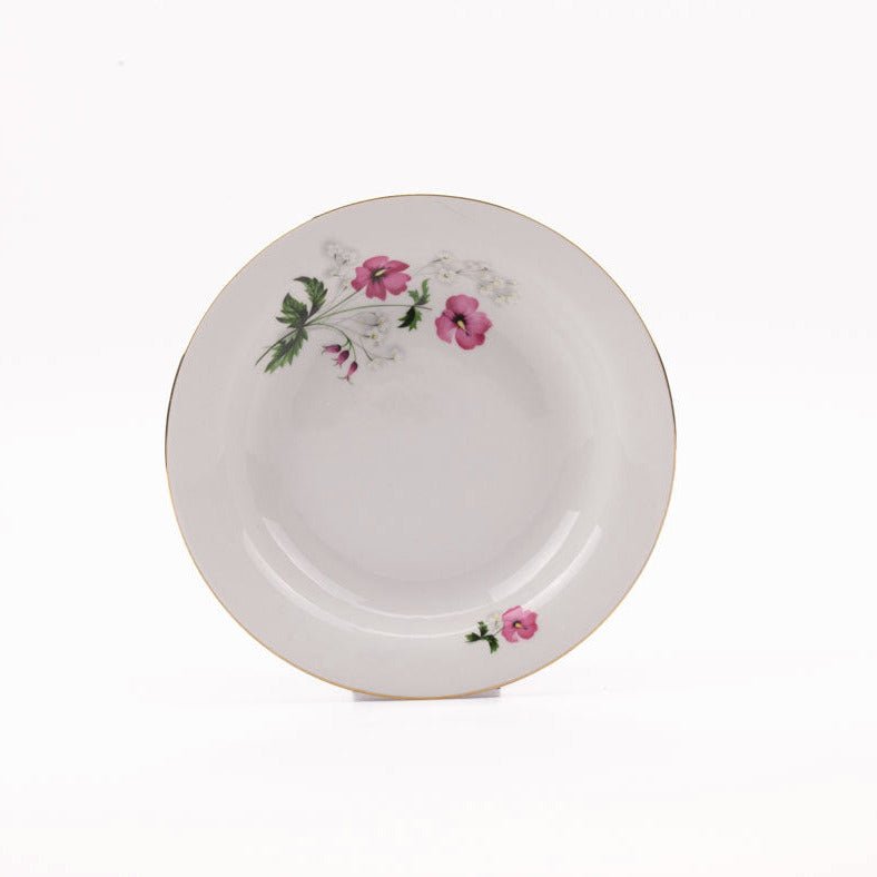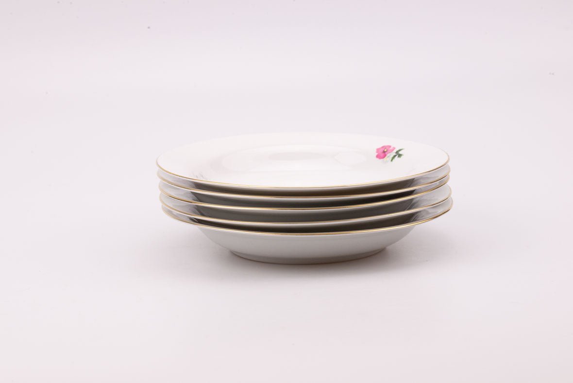 Vier vintage Kronester soepborden in zeer goede staat. Gouden rand met een fraai en verfijnd bloemenpatroon. Prachtig! Lees meer