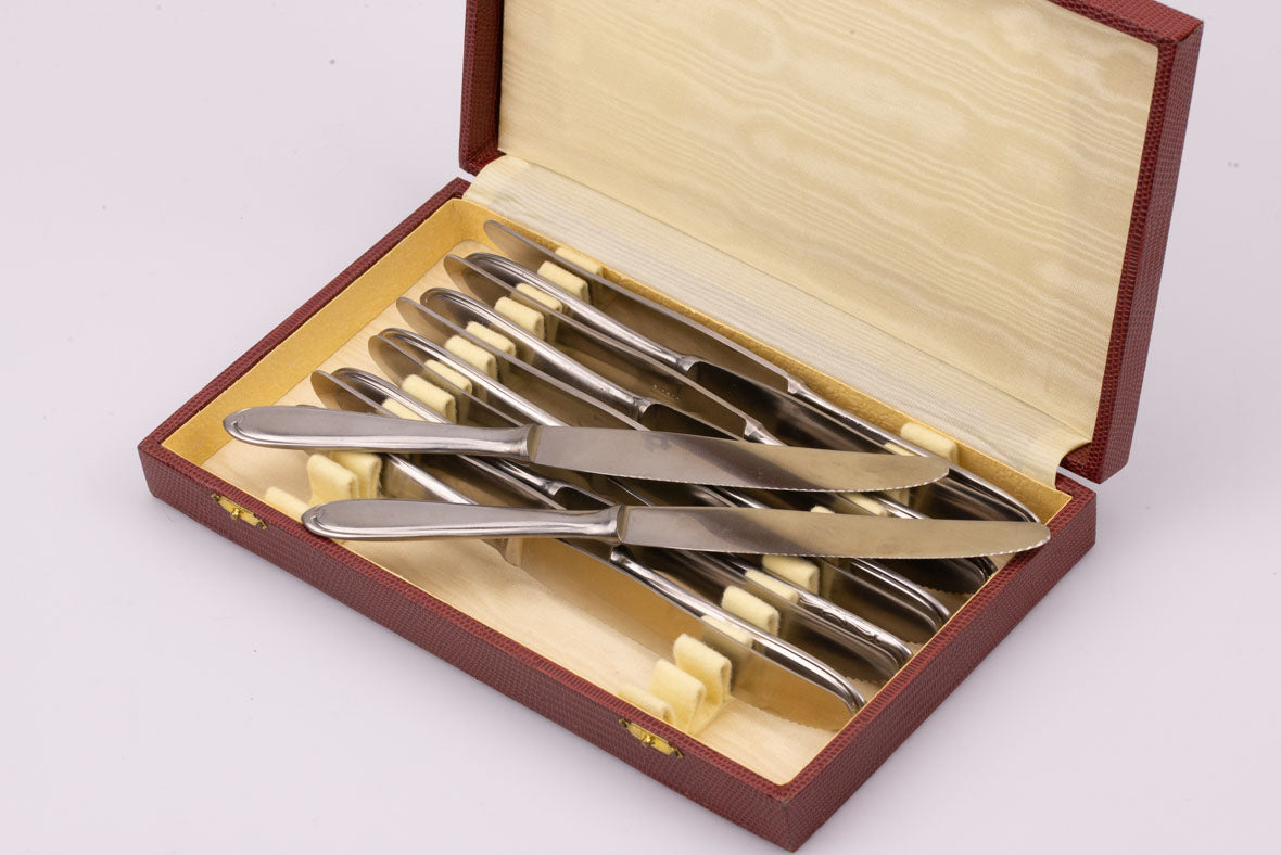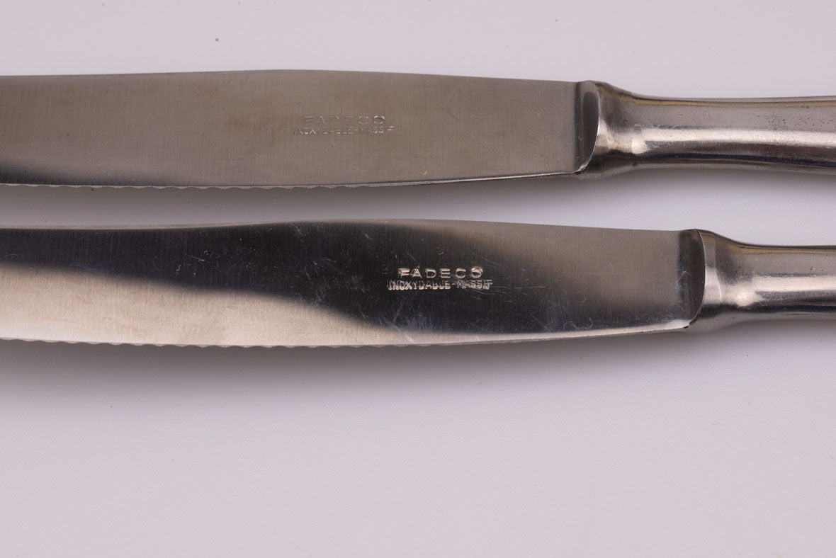 Prachtige set van 12 massief roestvrijstalen tafelmesssen van Fadeco. Verwen uzelf en verfraai uw tafelsetting met deze mooie messen. Eén... Lees meer