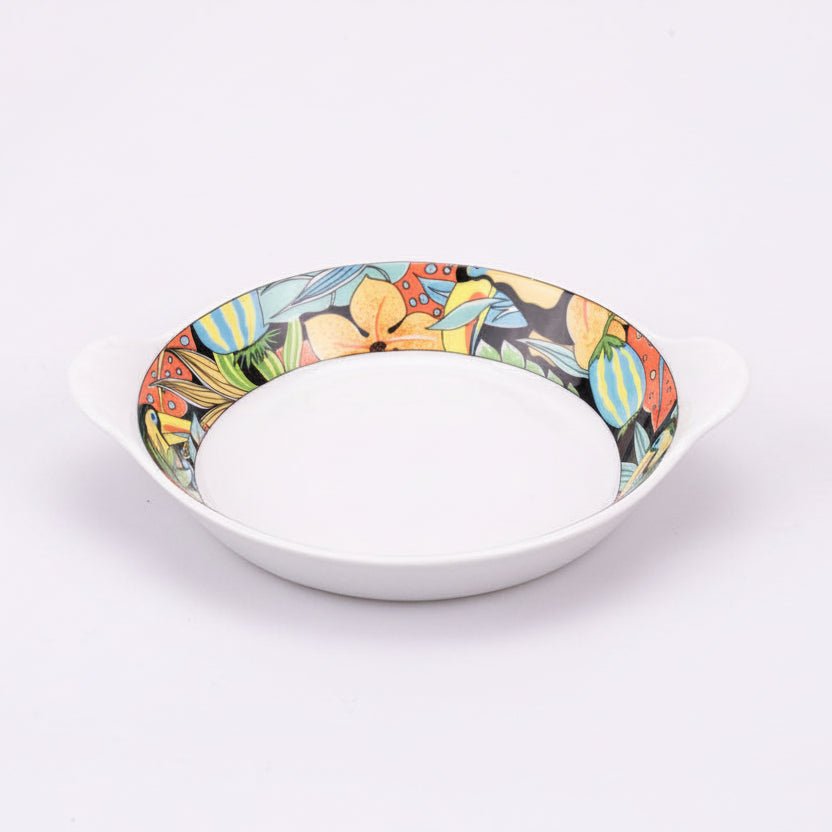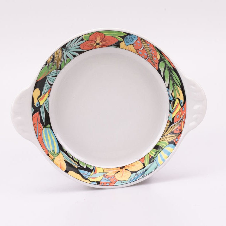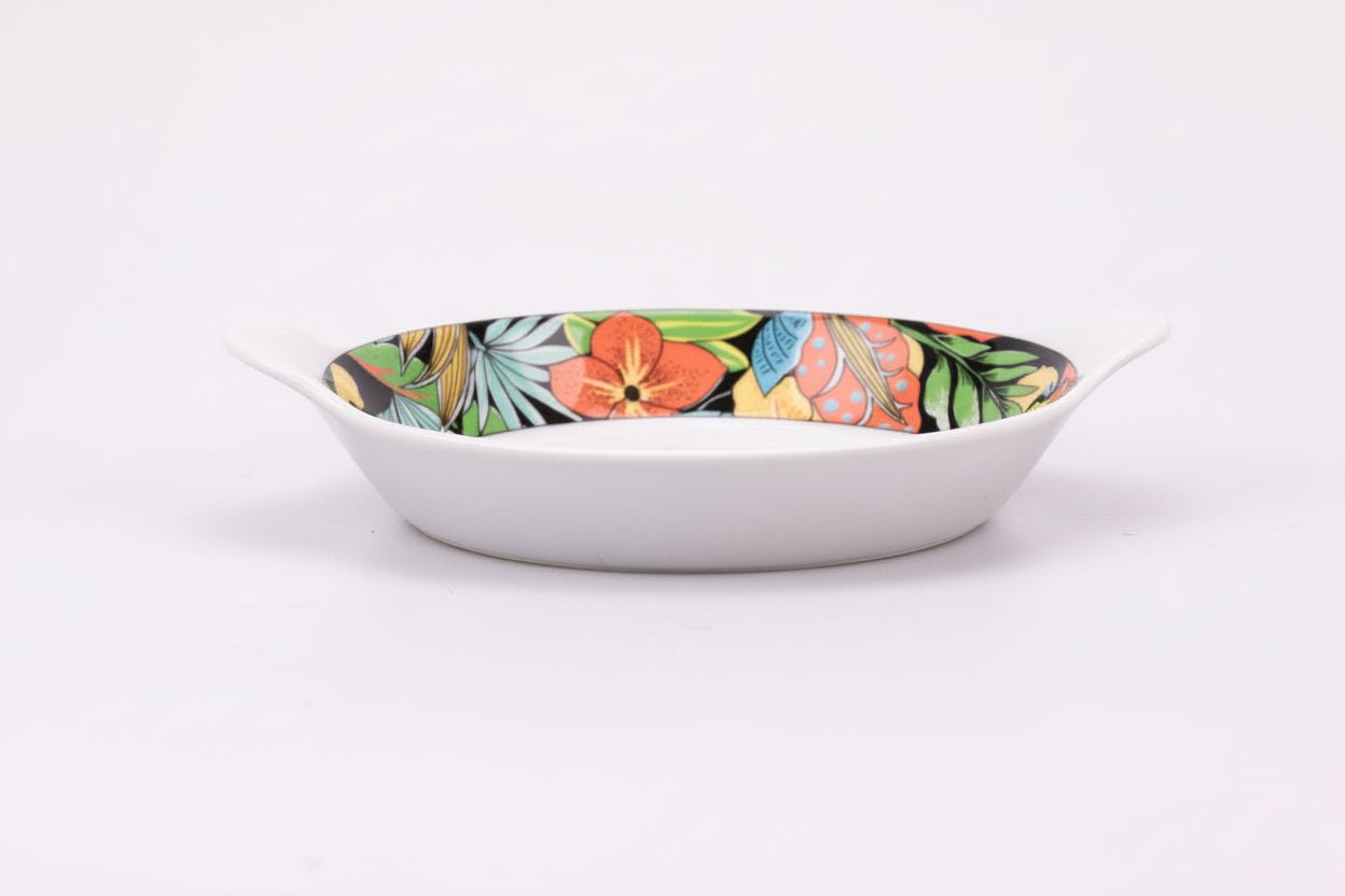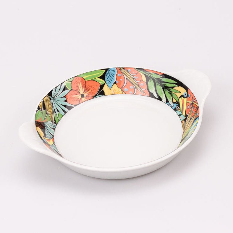 Klein vintage schaaltje van wit Pillivuyt-porselein met exotische decoratie.