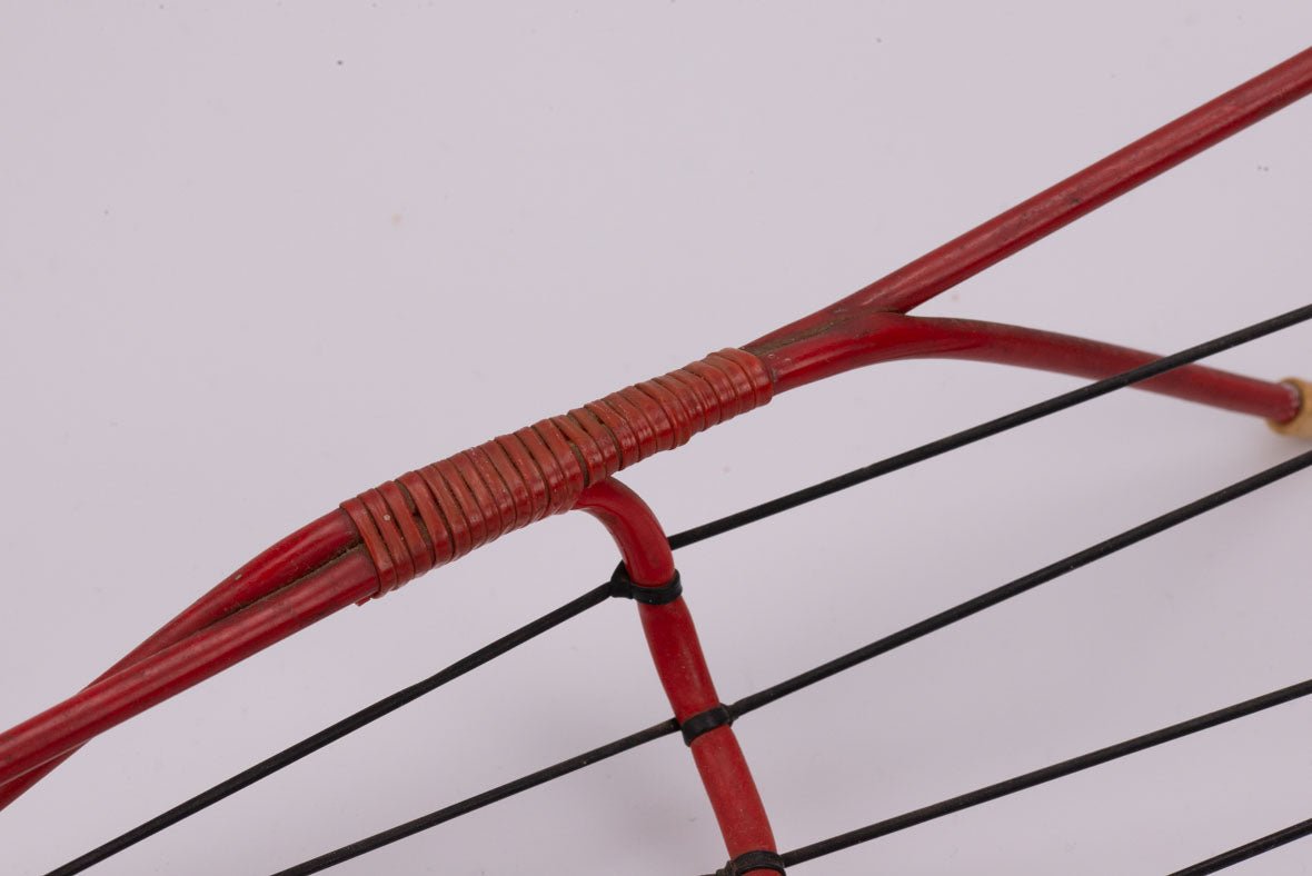 Originele fruitschaal van rood metaal met gevlochten zwart Scoubidou-koord en gele antislipvoetjes. Een charmant vintage item uit de jaren 60;... Lees meer