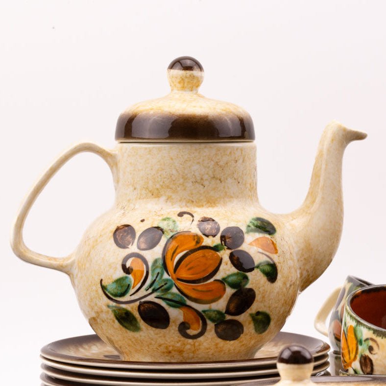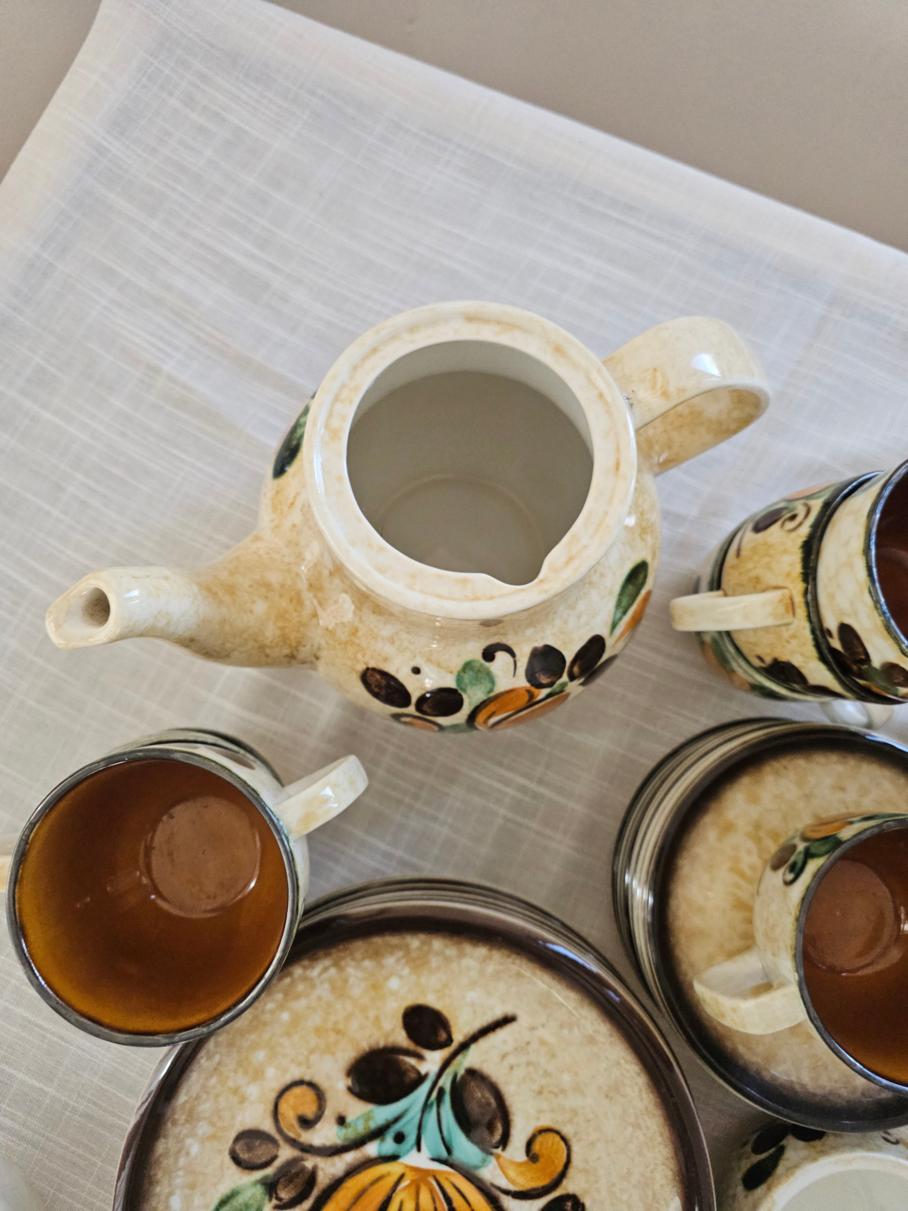 Complete serviesset in uitstekende staat: 10 kopjes, 10 schotels, 10 dessertbordjes, 1 koffiepot, 1 melkkannetje en 1 suikerpot. Gemaakt door... Lees meer