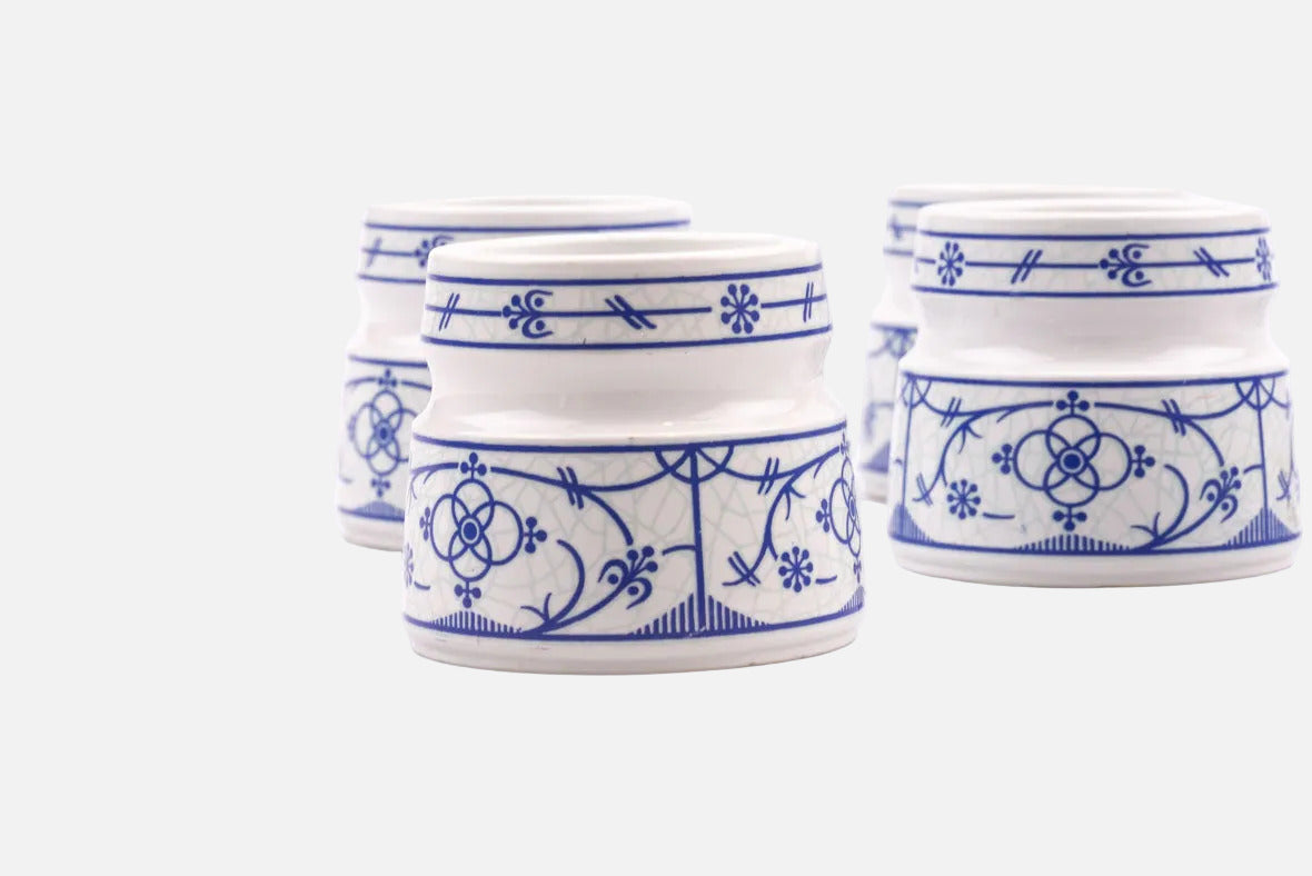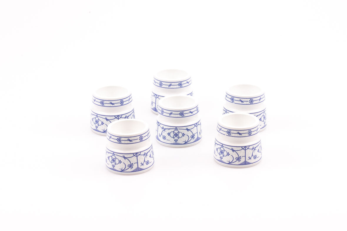 Set van 6 witte eierdopjes met blauwe versieringen. Deze eierdopjes zijn gemaakt van zeer stevig plastic. Lees meer