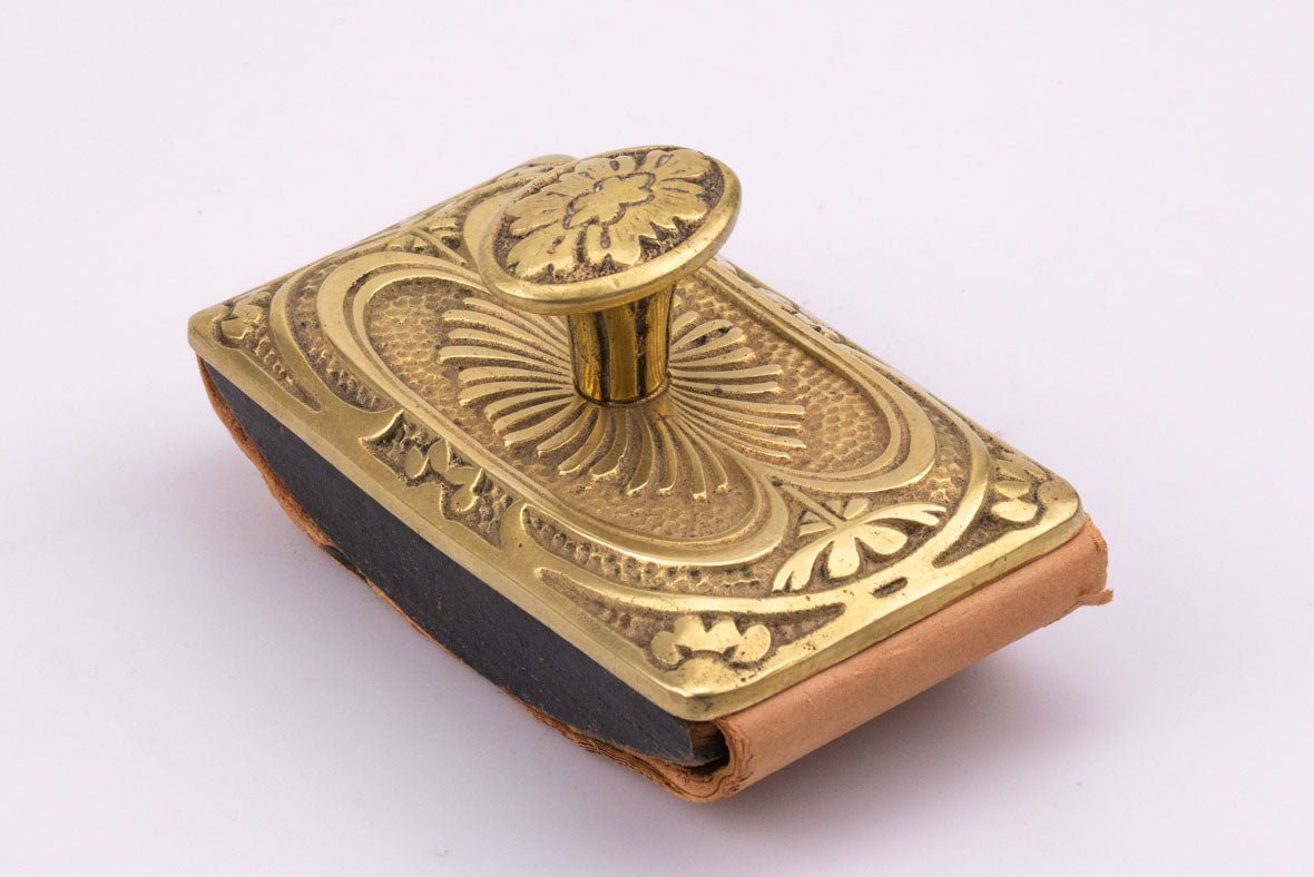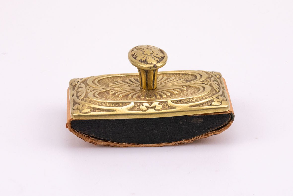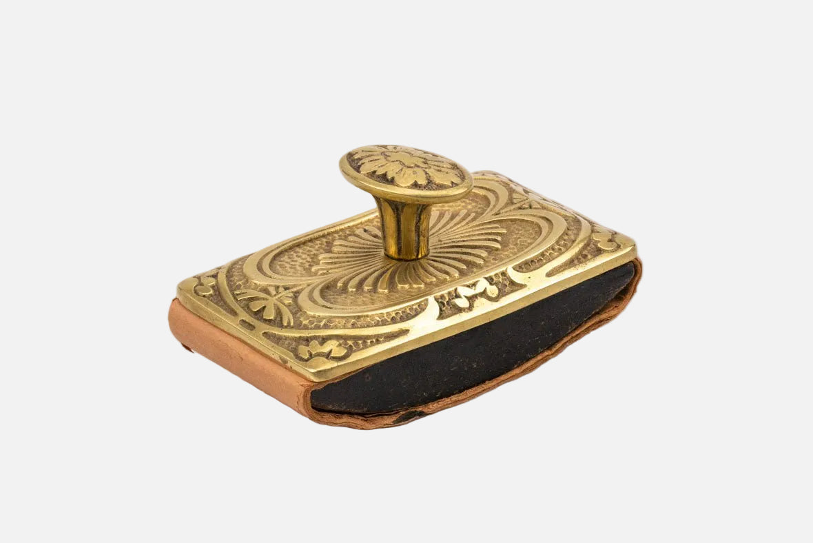 Een prachtig vloeipapierkussen, gemaakt van massief, fijn bewerkt messing. De onderkant is een afgeronde houten structuur waarin het vloeipapier wordt... Lees meer