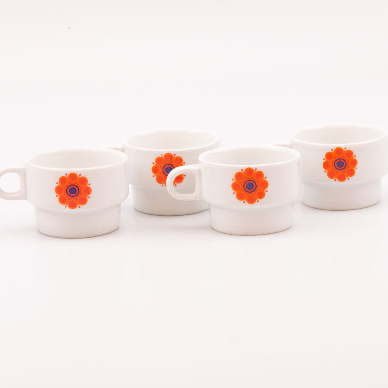 4 tasses à café élégante dans le style typique haut en couleur et en formes géométriques des années 60. Elles... En savoir plus