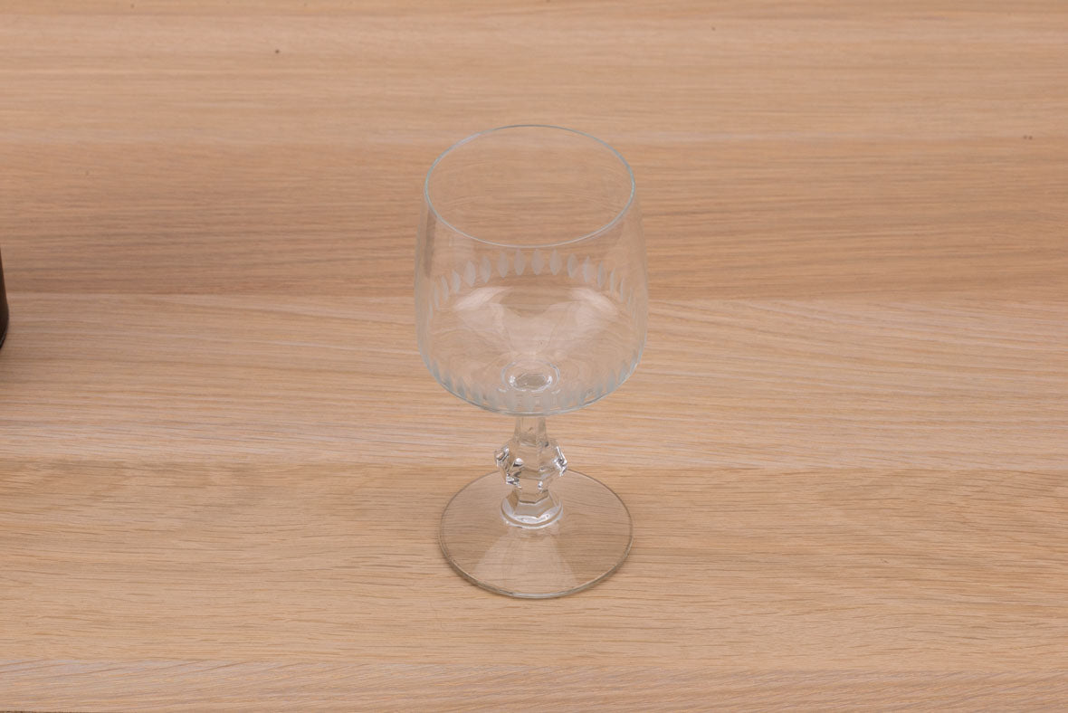5 grands verres à vin ou à eau, contenance de 23 cl. Verre sur pied rond à la jambe facetée... En savoir plus