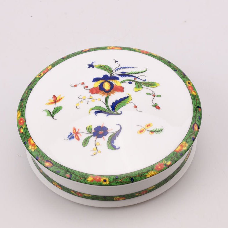 Superbe bonbonnière en porcelaine de Limoges en parfait état de la manufacture A.Raynaud & Co. Motif floral très délicat, coup... En savoir plus