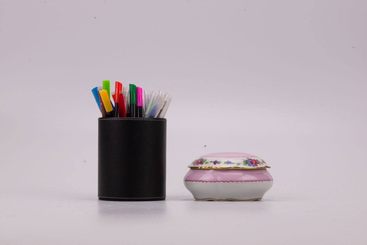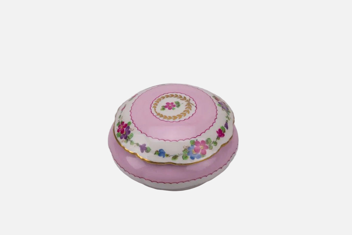 Bonbonnière en porcelaine Limoges rose avec motifs fleuris