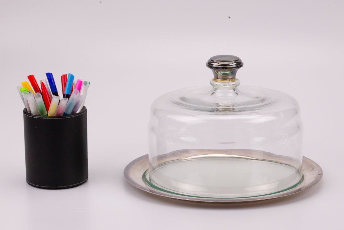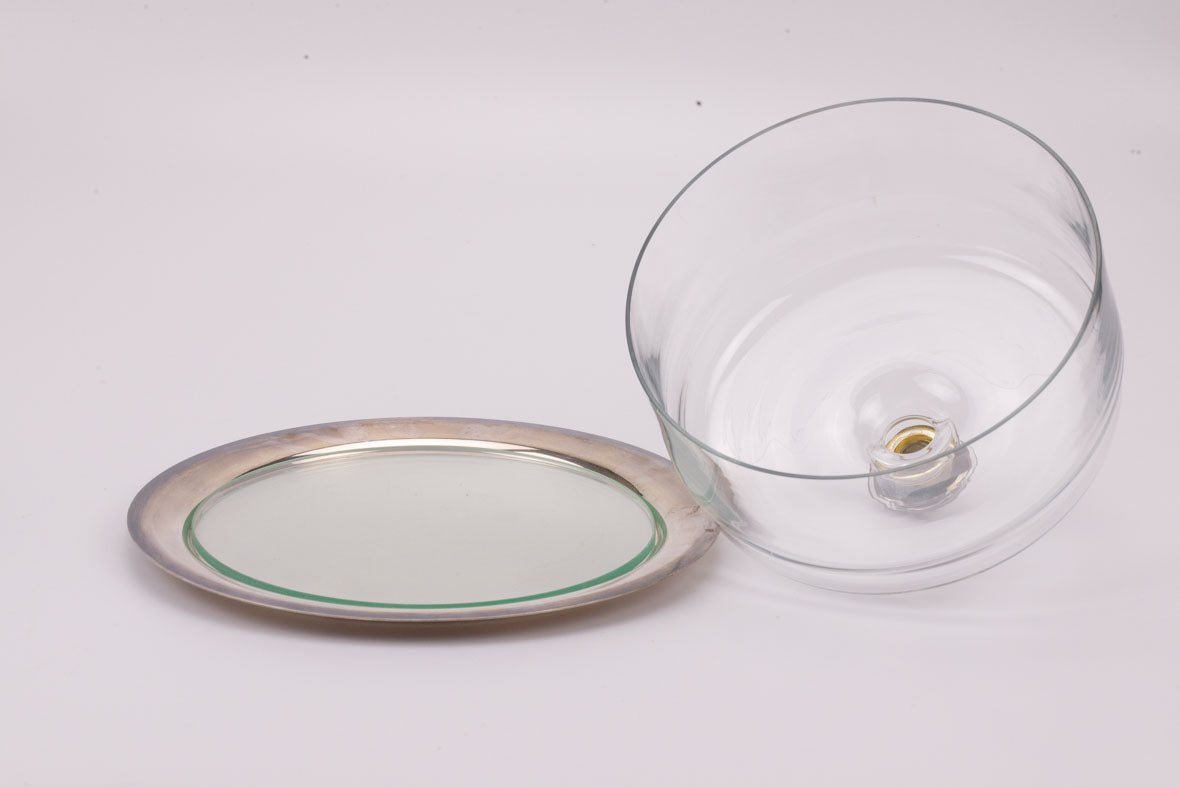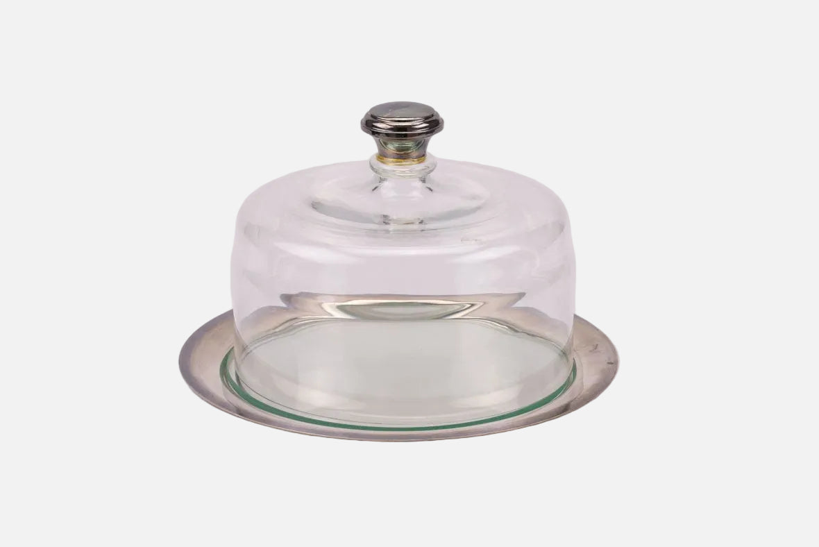 Cloche à pâtisserie en verre et métal argenté