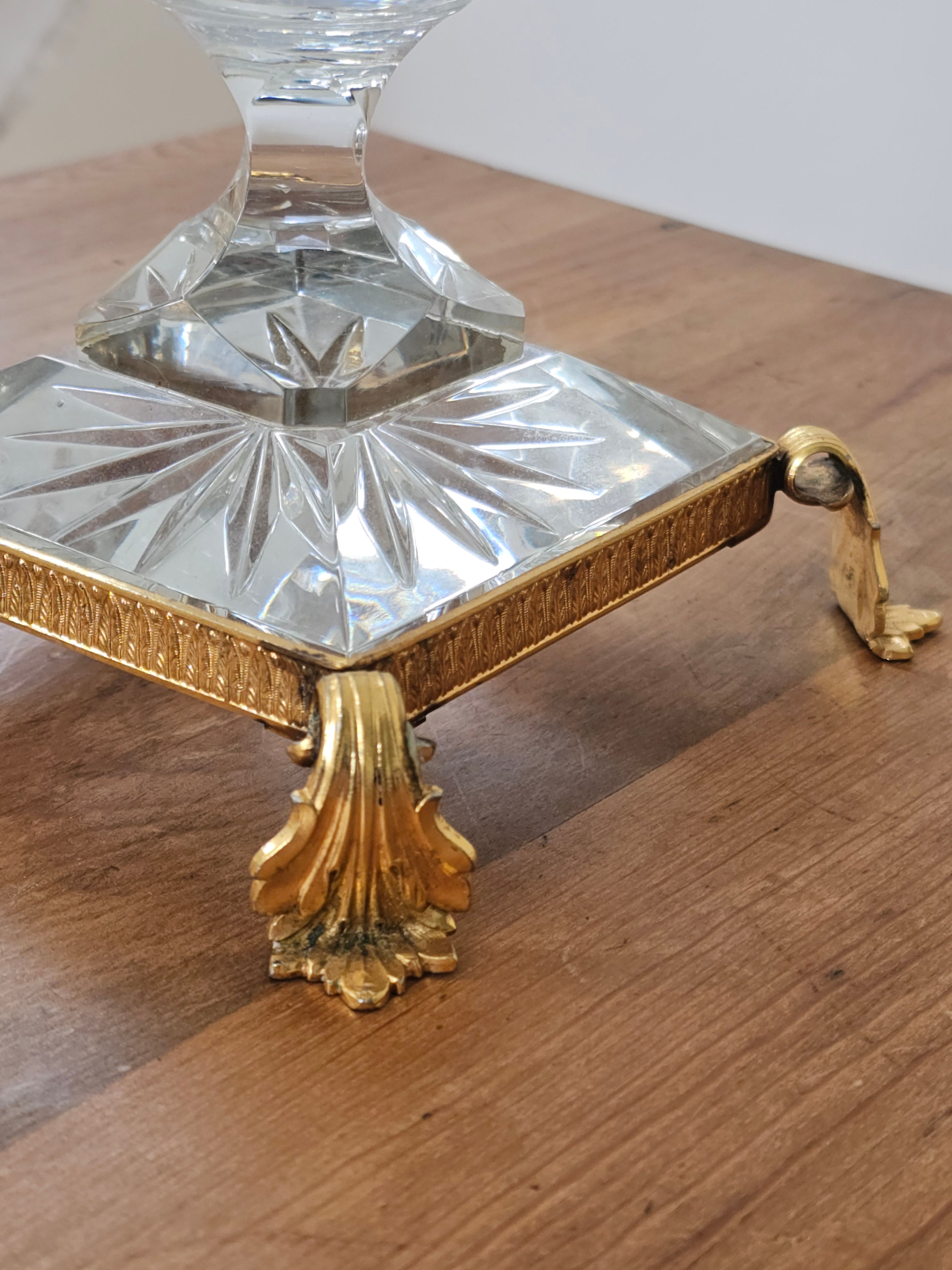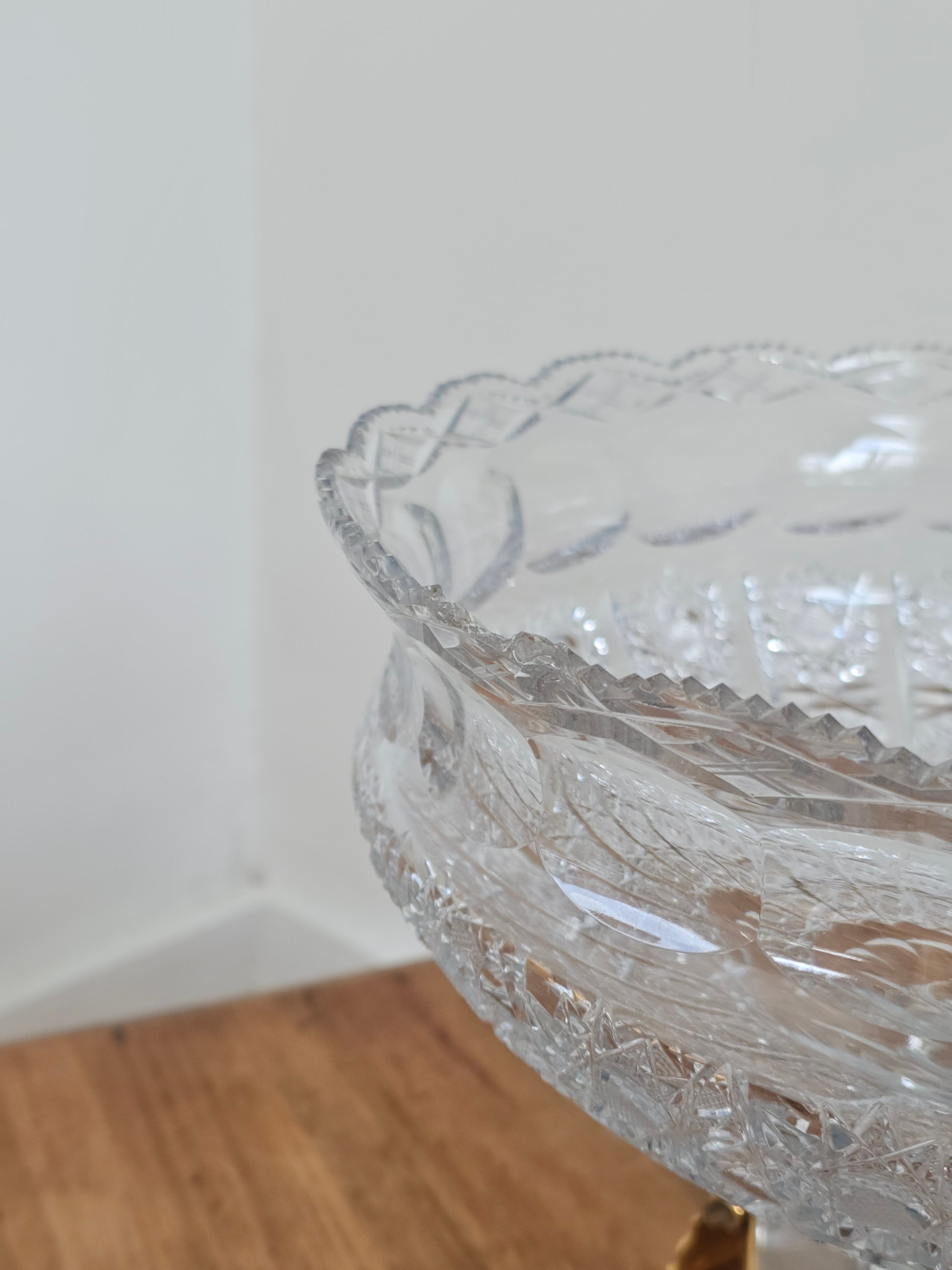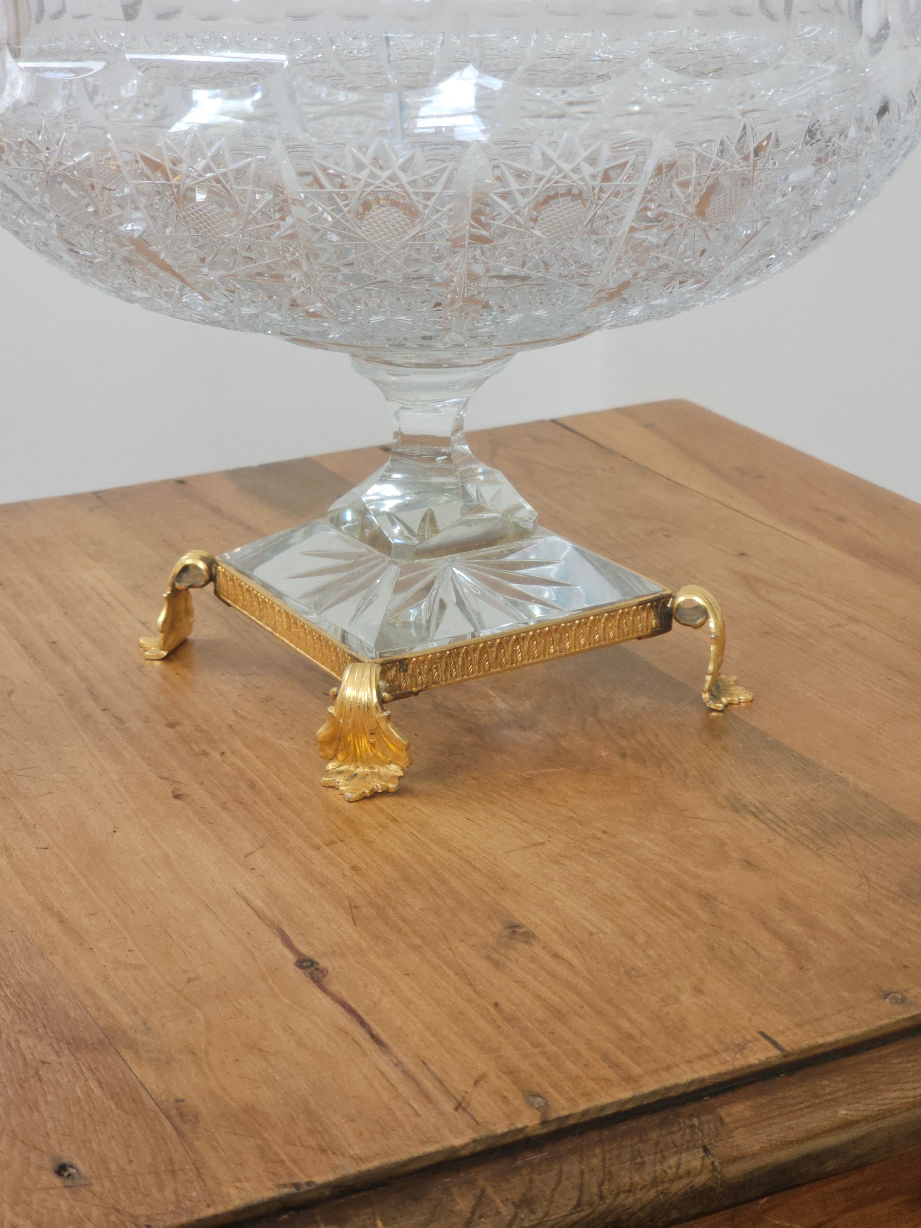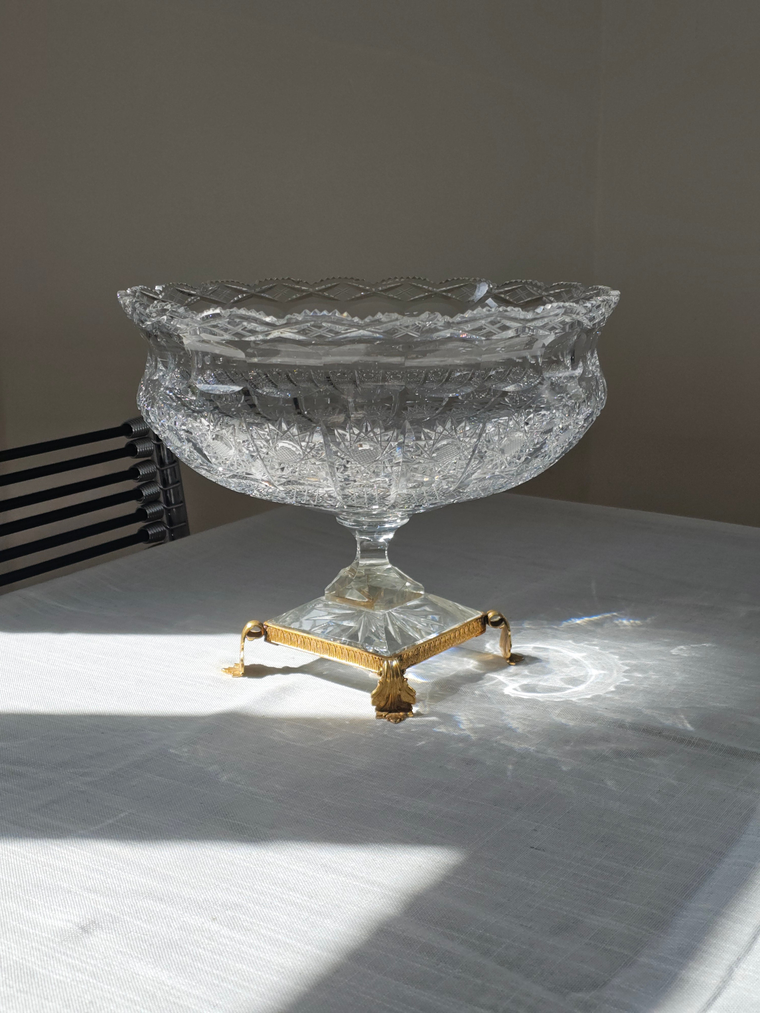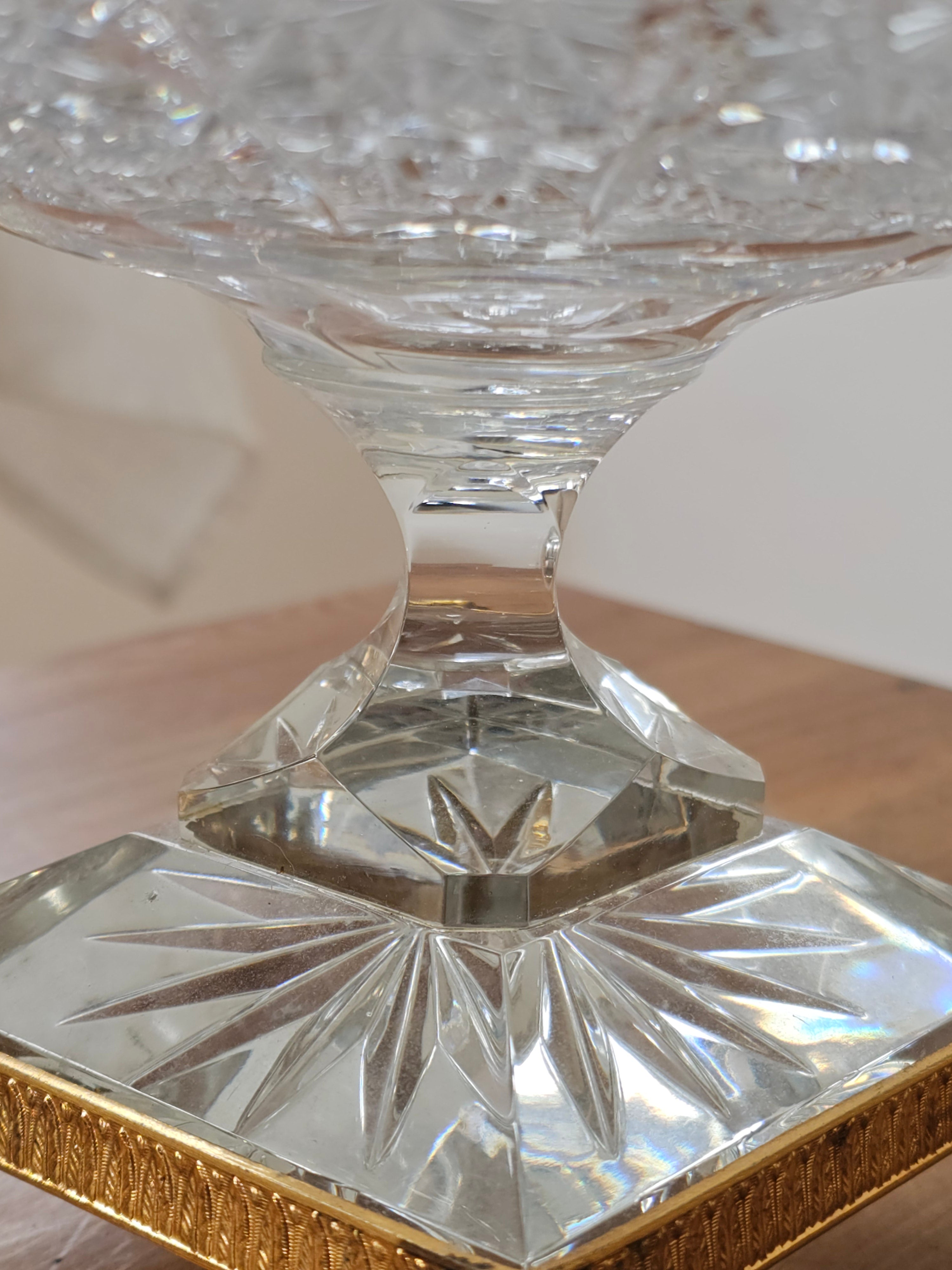Coupe en cristal taillé sur socle laiton style Bohème