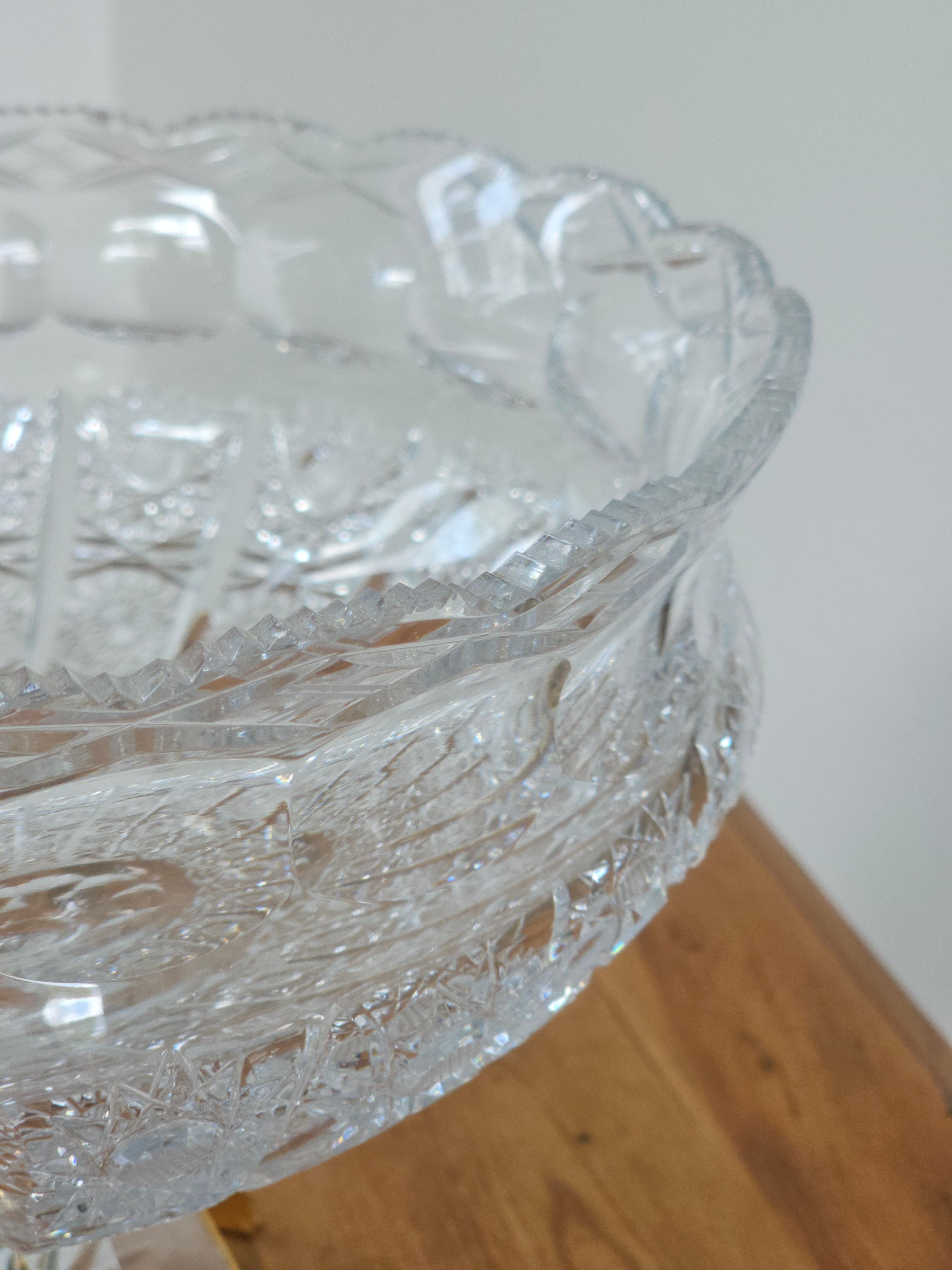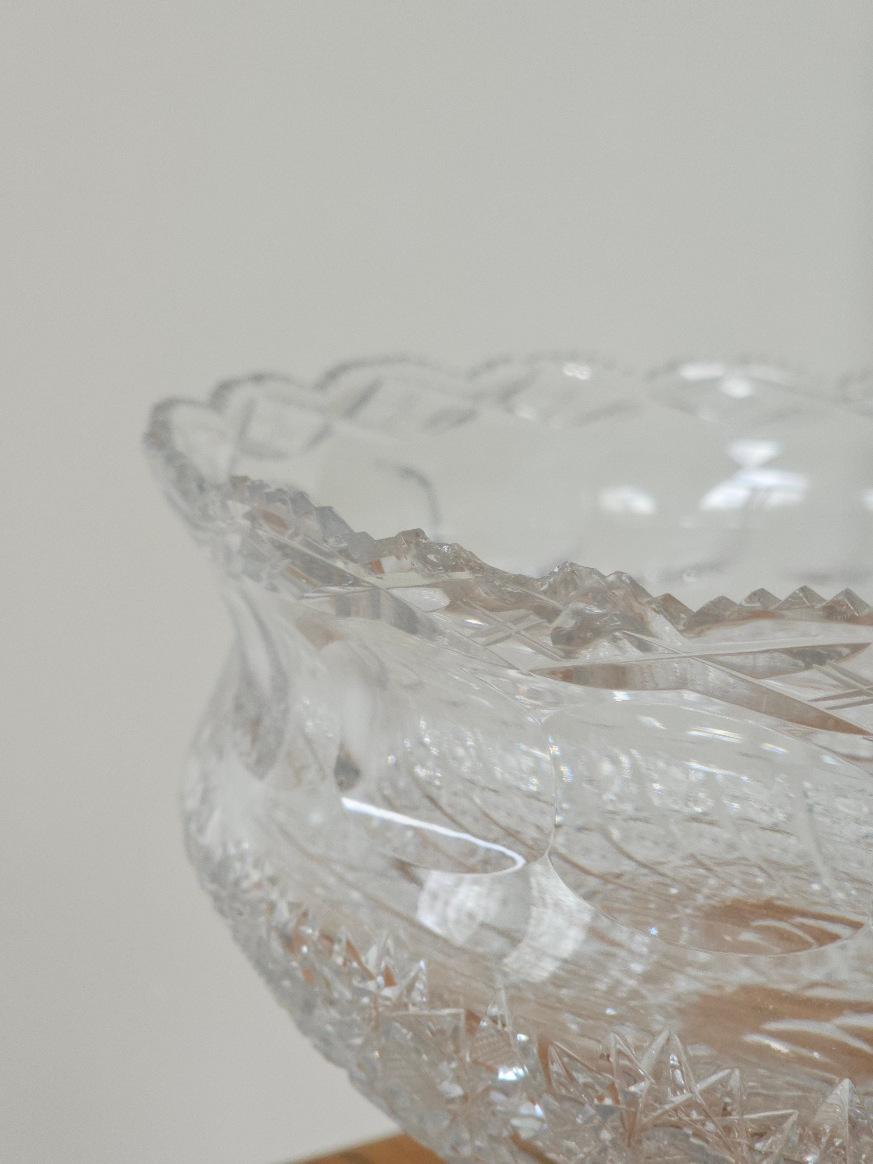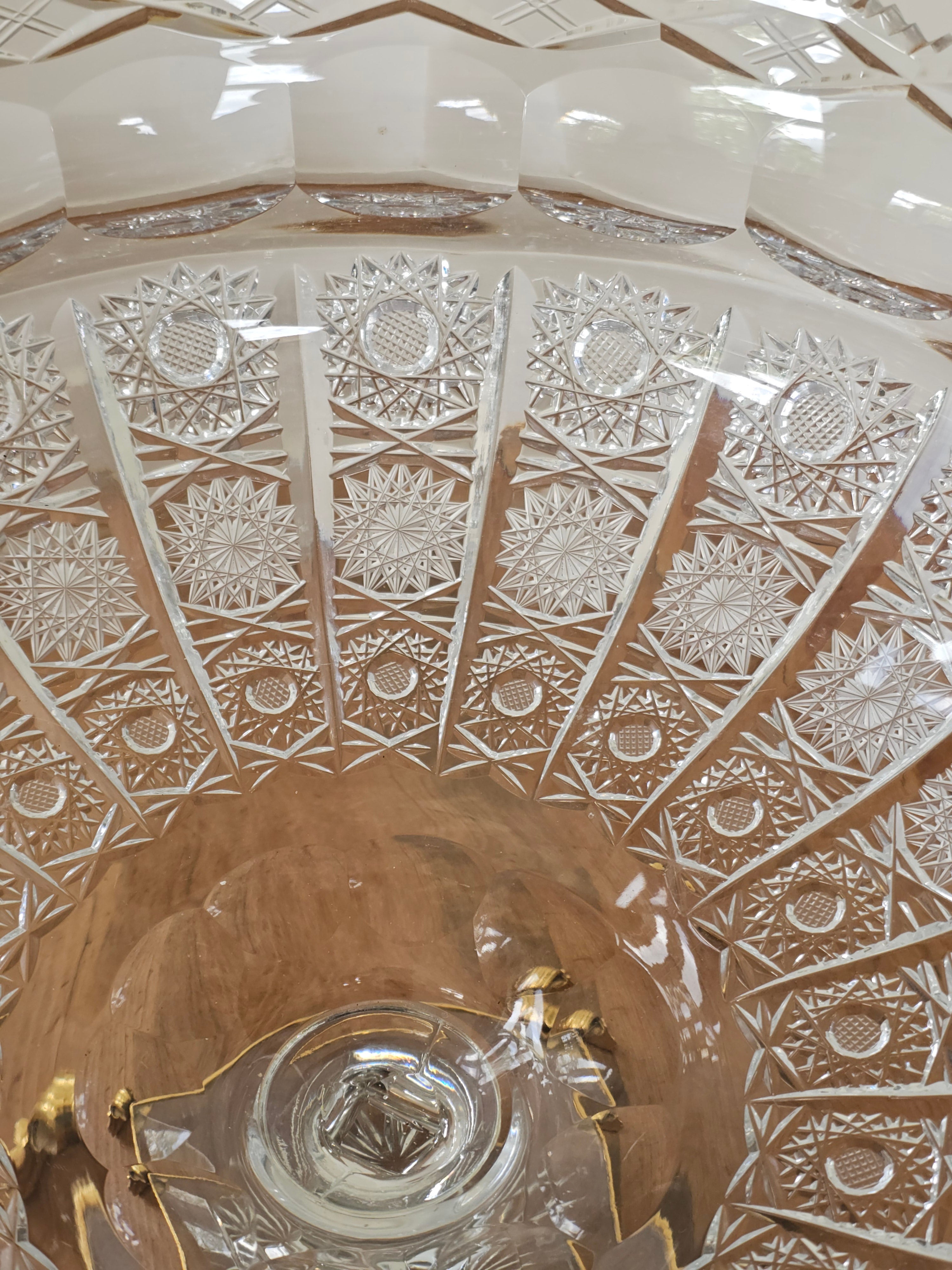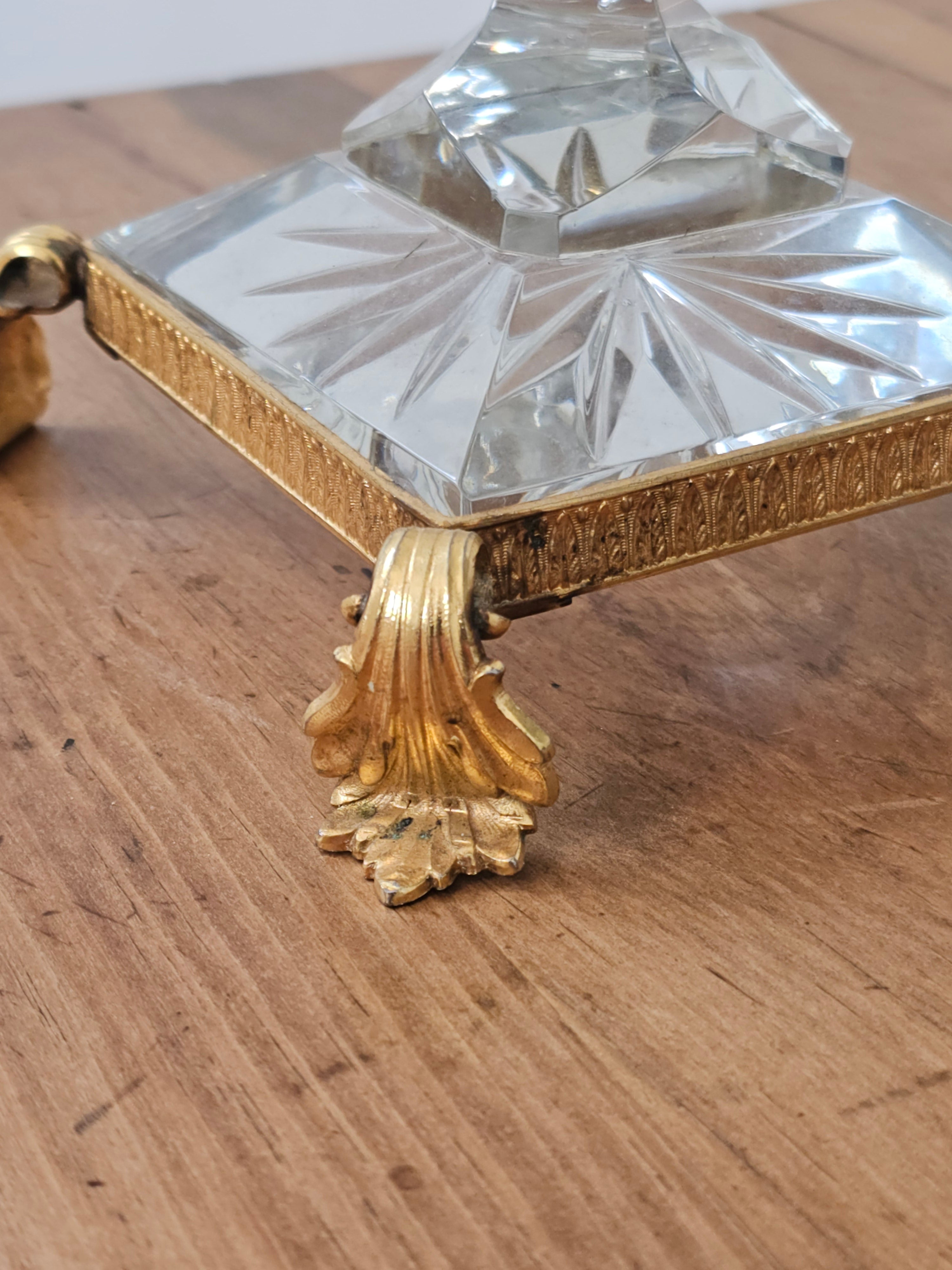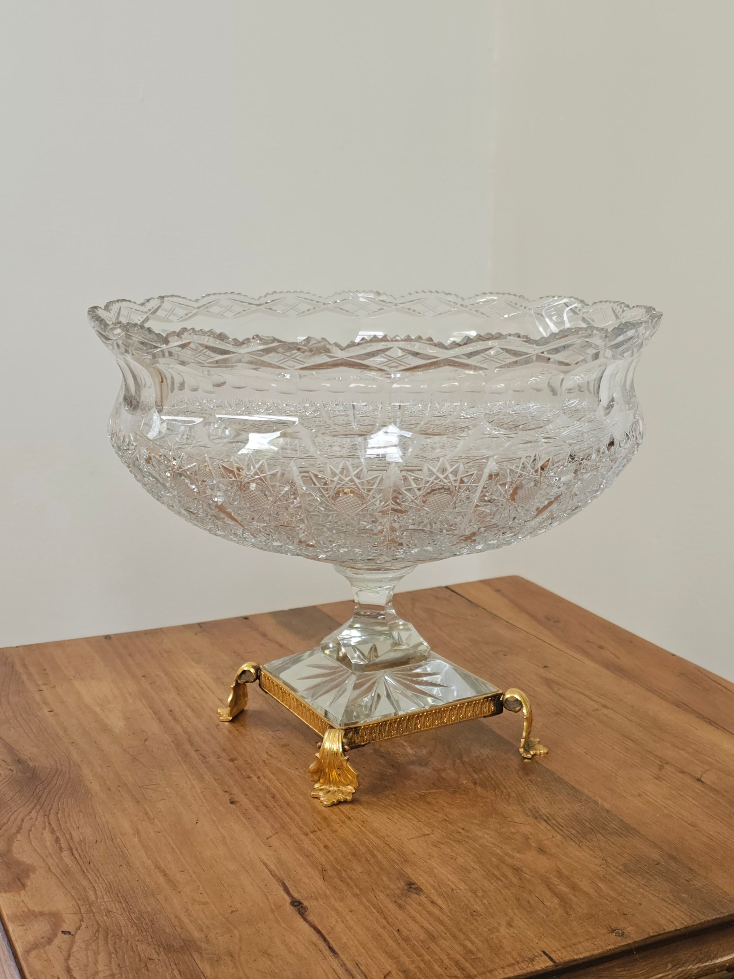 Coupe en cristal taillé sur socle laiton style Bohème