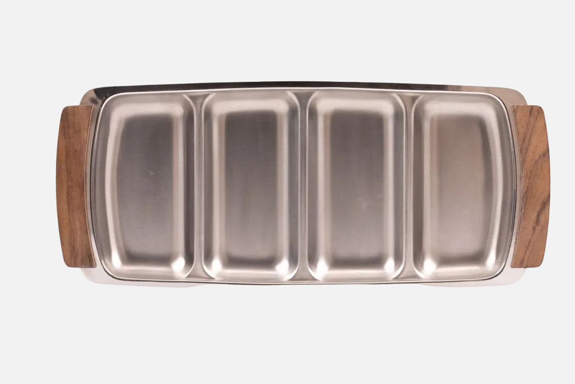 Grand plateau à 4 compartiments en inox