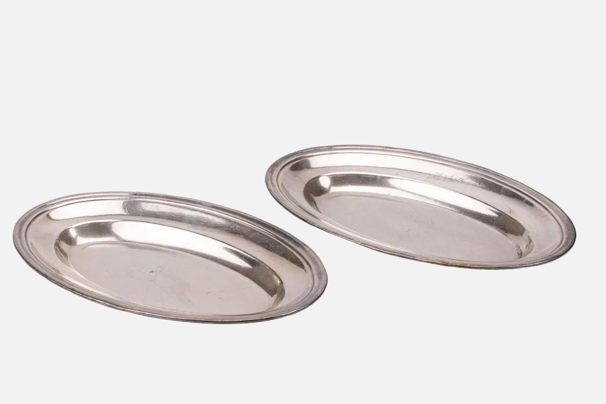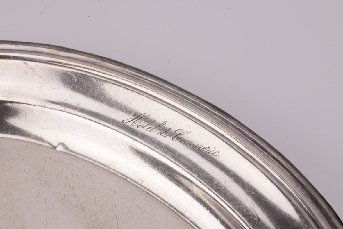 Paire de petits plateaux argentés en métal "Hôtel de commerce"