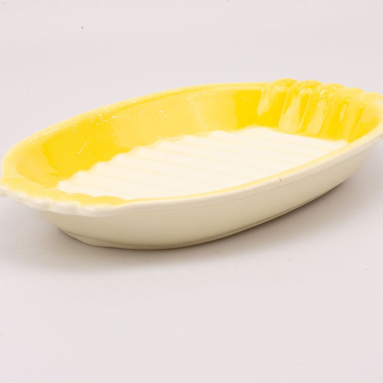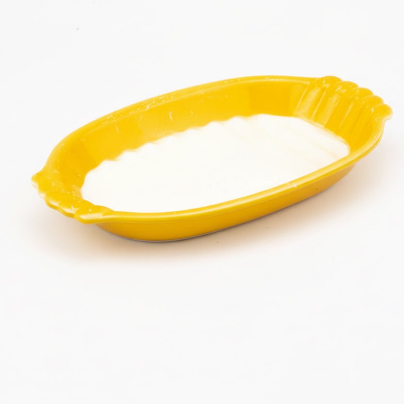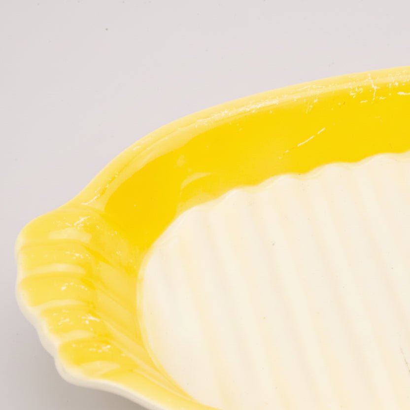 Ravissant plat de service jaune en faïence avec des rainures au fond du plat. Traces d'usure visibles qui donnent beaucoup... En savoir plus
