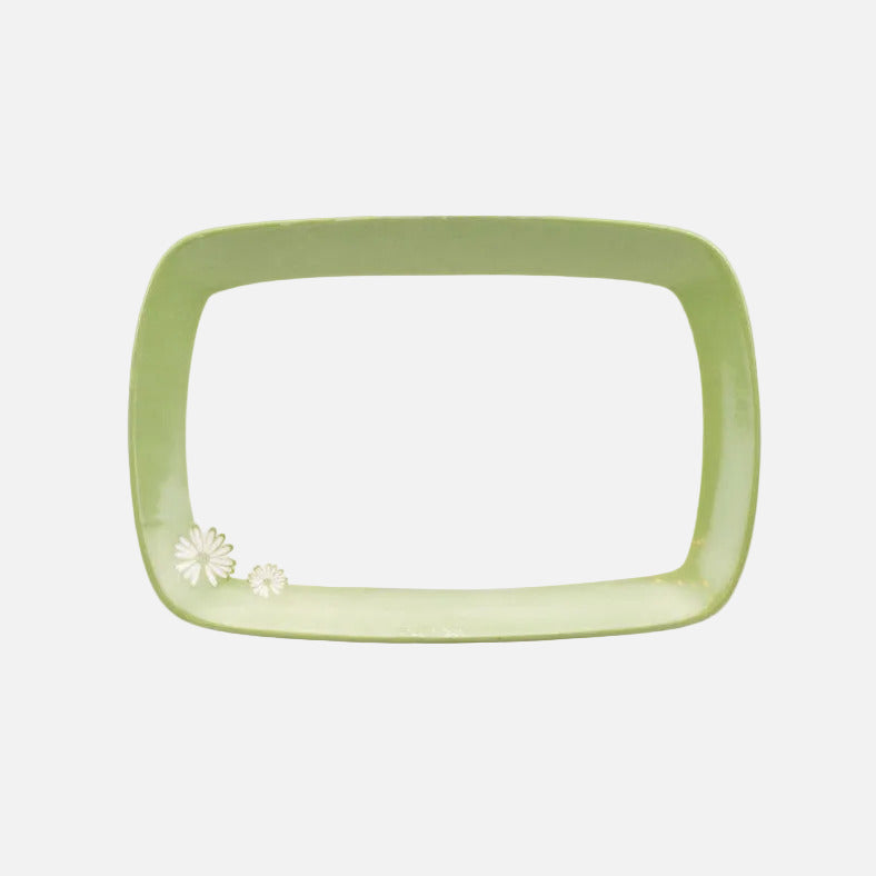 Beau plateau vintage en porcelaine de la marque Toscana. Tout blanc et avec un beau contour vert et un petit... En savoir plus