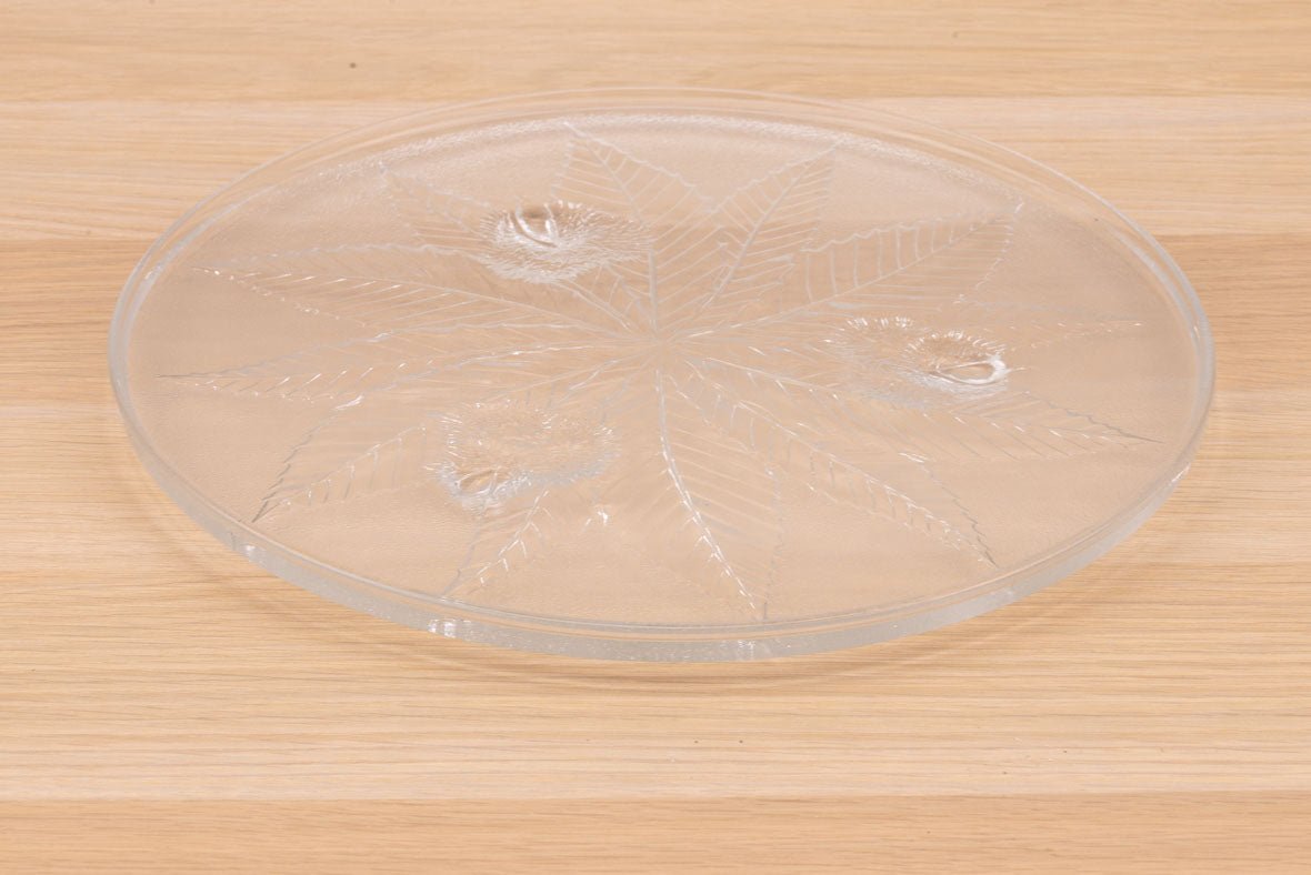 Plat en verre sculpté aux motifs de feuilles sculptées