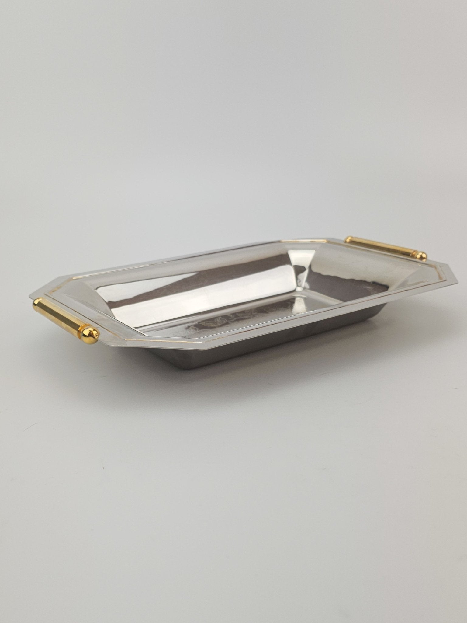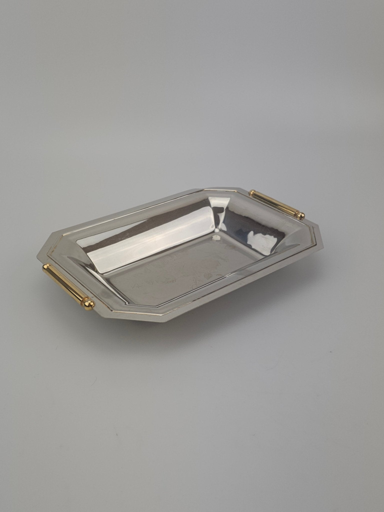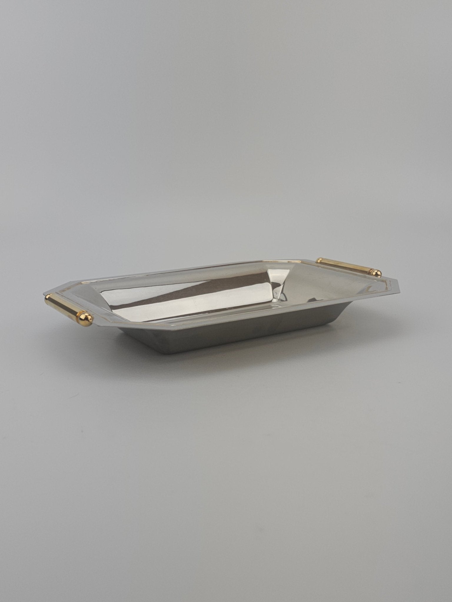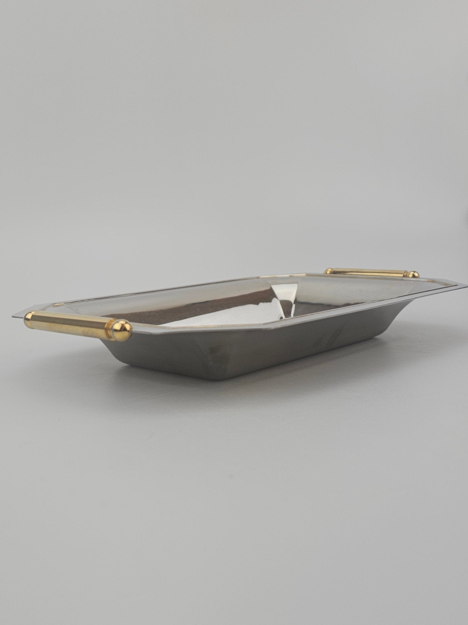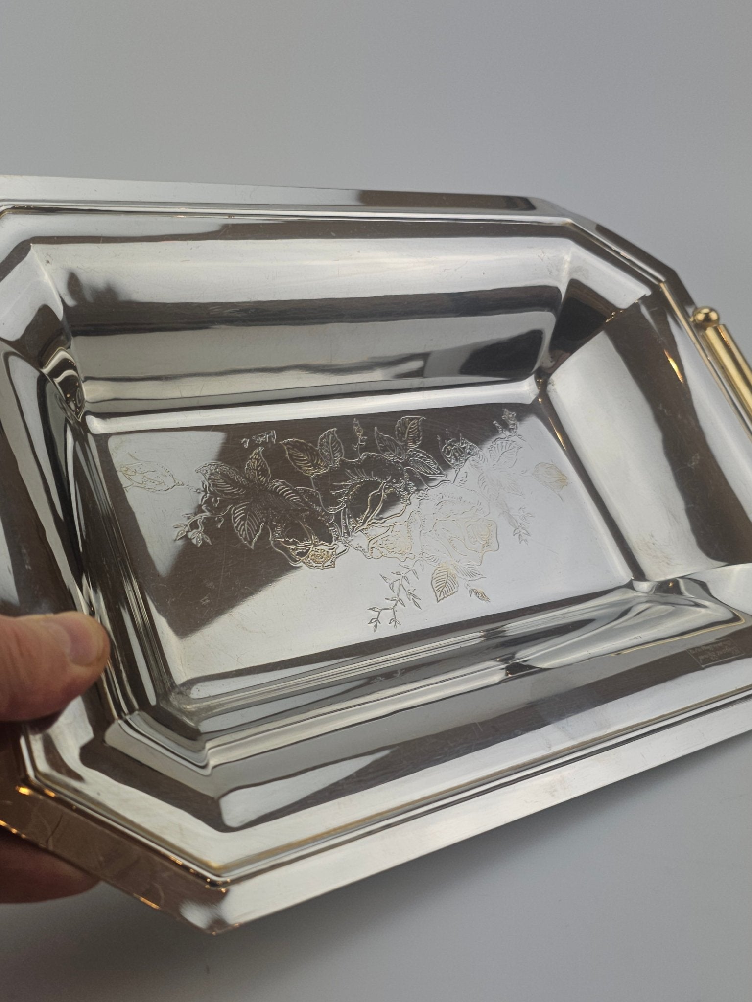 Très élégant plateau en inox avec un superbe motif floral gravé sur le fond et les dorures. Le motif est... En savoir plus