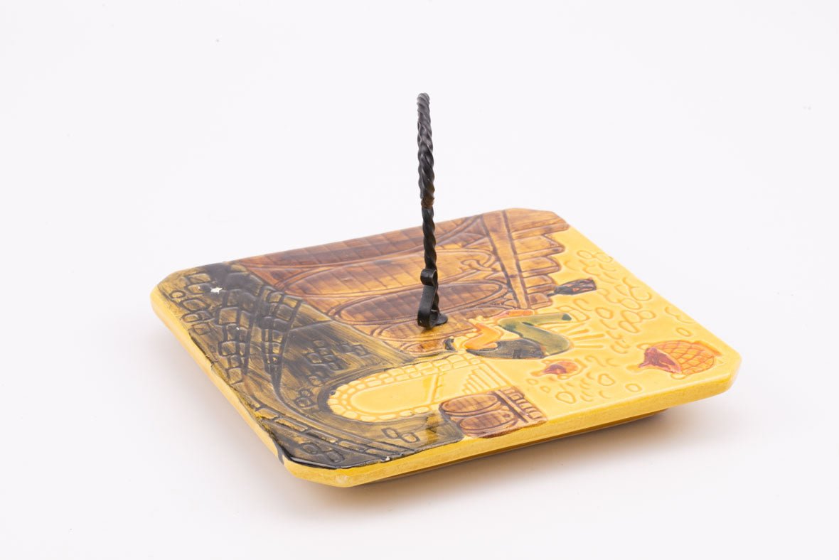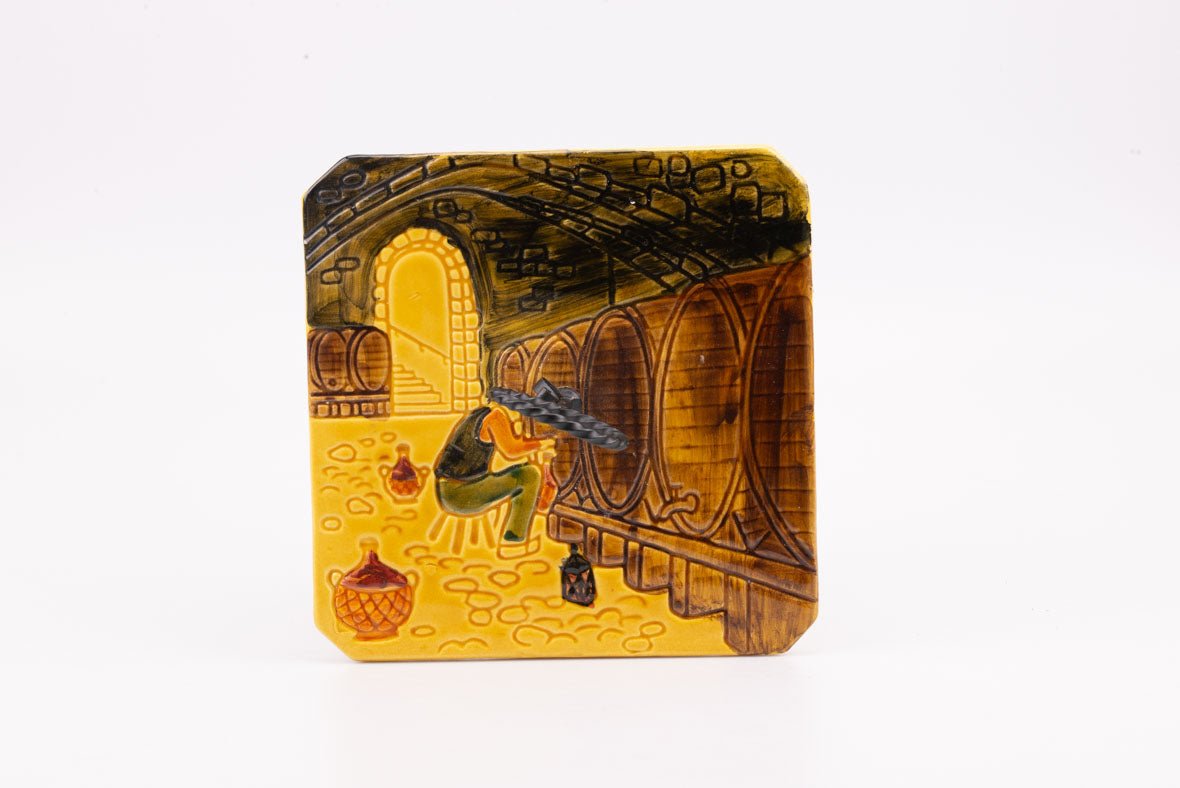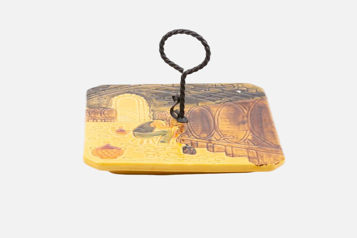 Plateau à fromage Vallauris faïence jaune avec dessin cuves de vin