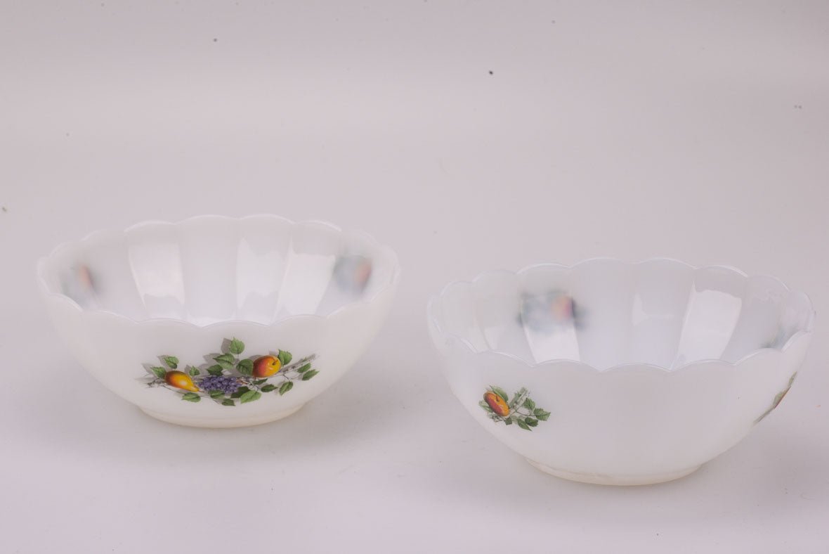 Saladier Arcopal blanc motifs de fruits collection Fruits de France